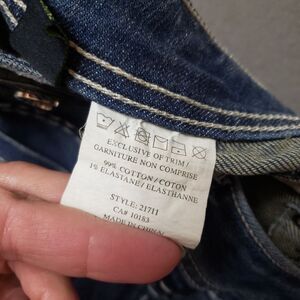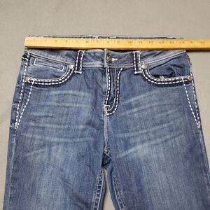 Missing a rhinestone on one back pocket as pictured. Otherwise good condition.