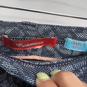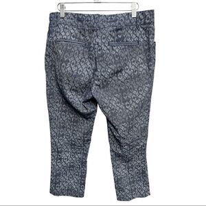 Cropped length pants, front pockets, belt loops, back faux pockets