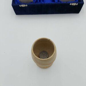 Very good condition, goblets were modified with flower frogs to be used as small vases. Set includes velvet case.