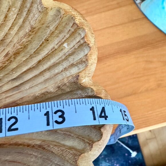 Carved wood shell shaped tray or wall accent, has marks on bottom as previously used. Super original looking and I can't figure out if it belongs on a wall or holding something! Measures about 14.5 inches by 10 inches. Cat friendly, nonsmoking home.