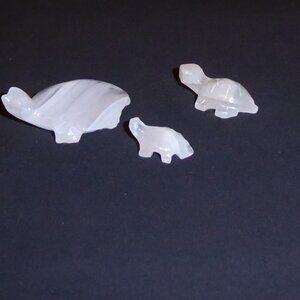 The blue green one of possibly Malachite but I am not sure. It has a tiny chip on its nose.