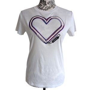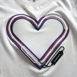 Carven Tee I Women's Small Blanc Optique White Purple Heart Graphic Kitschy Y2K