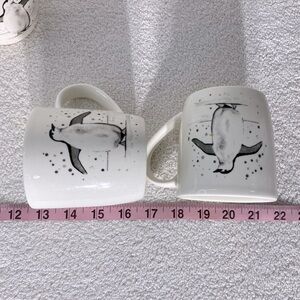 Casa Signature White Grey Ceramic Penguin Mugs X3