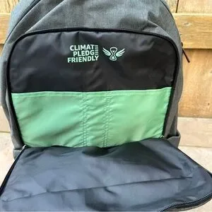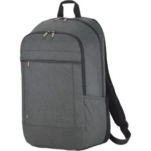 Backpack with spacious, padded main compartment which holds a 15in laptop