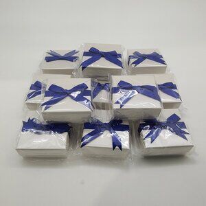Case of 50 Pearlized White Sturdy Box with Secure Glued Blue Bow & Insert