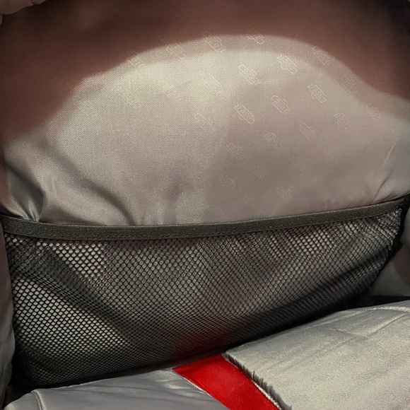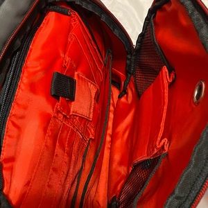 - 2 main compartments with one laptop/tablet pocket each that can be buckled and one mesh pocket each