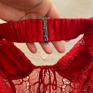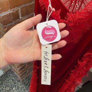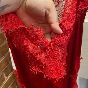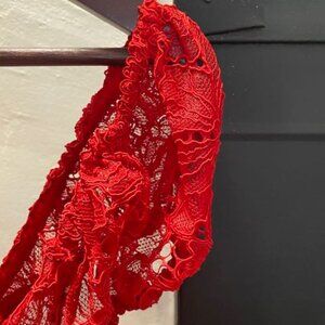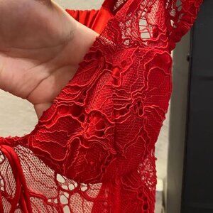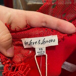Short sleeve midi dress from For Love & Lemons. Design details include a plunging neckline and a sheer lace bodice that blends into the swingy midi skirt with sheer lace panels at the sides. Finished with cutout detailing at the back.