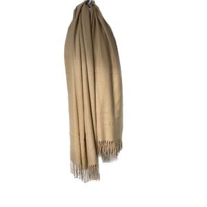 Cashmere Finished Scarf Firenze Italia Solid Tan Fringe Large Very Soft