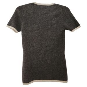 💯 Cashmere Gray Cashmere Short Sleeve Sweater White Piping S