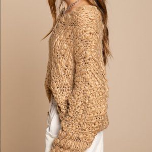 This oversized, cashmere like, beautifully knit sweater is a great sloppy sexy look, over camisoles, bralettes, tanks, etc.