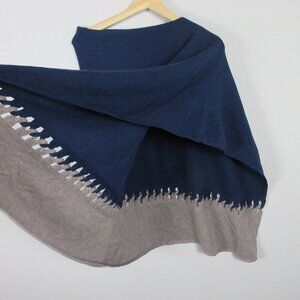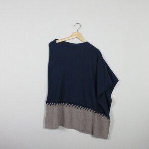 Cashmere Studio Women's Twist Stitch Poncho Pullover Sweater Blue Gray 294