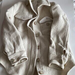The white jacket is 100% Merino wool. There are some marks around the neckline.