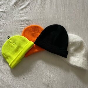 Hat bundle of 3 beanies & one faux fur bucket hat