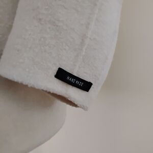very soft luxurious cashmere and wool blend. very warm and beautiful tailoring details. Handmade in Korea