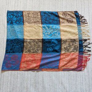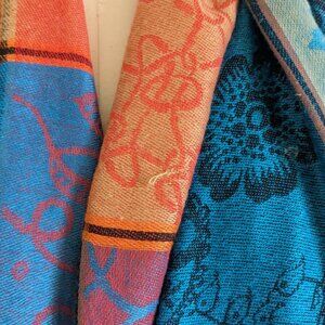 Beautiful Pashmina scarf from India. Made of silk and cashmere, super soft and luxurious. In good condition, but a few snags (see close up photos). These could be pulled back through with the right tool, I just don't have it.
