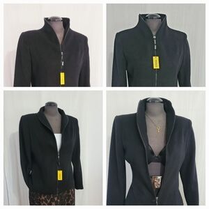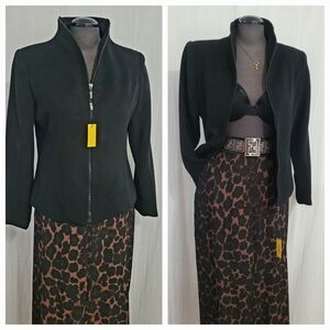 The beauty of this jacket is the zipper as it creates different looks depending on how high the zipper is!!! please see pictures for more details/ fitted seams in front and back