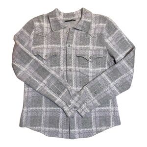 Cashmere snap button up western style checkered plaid sweater. Sz 4