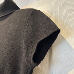 Black 100% cashmere tunic with ruching on both sides, cap sleeves and turtleneck. Ann Taylor, size XS, excellent condition. Length from below arm to hem is 17". Dry clean recommended.