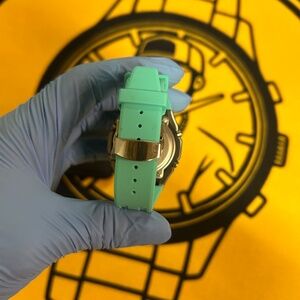This stylish Casio G-Shock GA-2100 “CasiOak” features a premium silver custom bezel paired with a vibrant turquoise strap, giving it a fresh, modern, and eye-catching look.