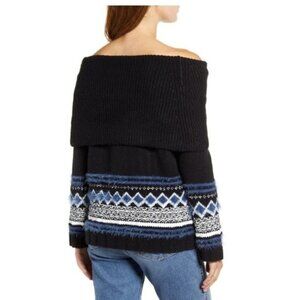 With both cowl neck and off-the-shoulder options, you decide if you want to style this fuzzy Fair Isle sweater for snuggles or sass.