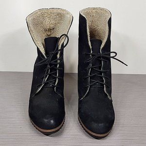 Caslon Gaby Faux Shearling Lace-Up Bootie, Black Leather, Womens Size 9 & 12