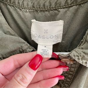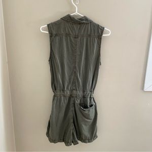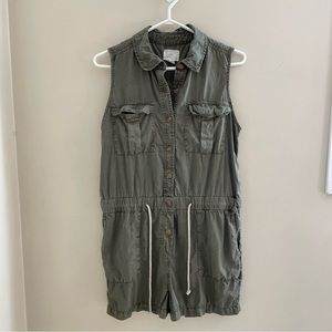 C-a-s-l-o-n Olive Green Sleeveless Button Down, Drawstring Short Romper, Size M
