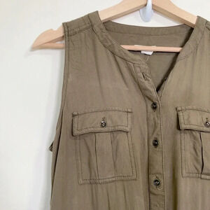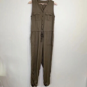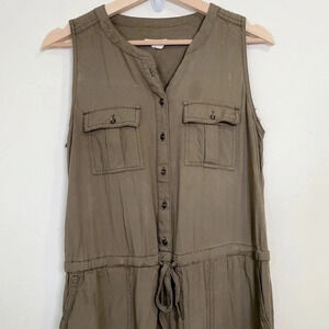 Caslon Sleeveless Green Army Waist Drawstring Jumpsuit