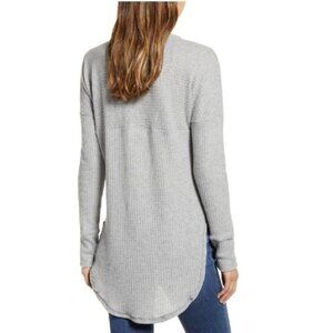 A casual top in an elongated high/low shirttail cut with thermal stitching is the kind of cozy staple that's worth collecting in multiple colors.