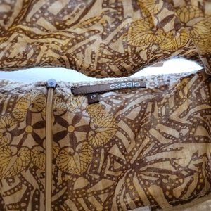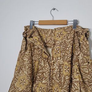 Cassis Bohemian A-Line Skirt Brown Tan Patterned Belted Pockets Boho Lined Sz 12