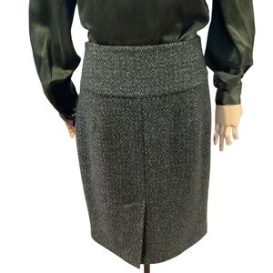 This listing is for a green wool blend skirt. See pictured tag for exact composition. Selling it as I no longer work in an office and it needs to be worn!