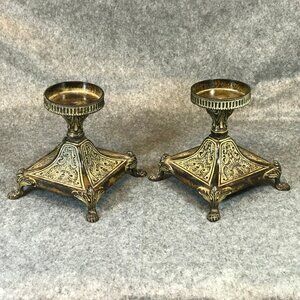 Pair of Cast Iron Footed Rustic Distressed Accent Candle Holders