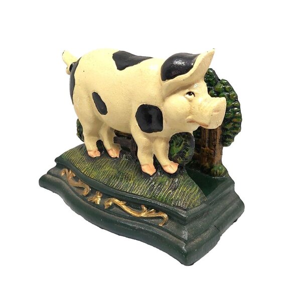 Cast Iron Pot Belly Pig Book Ends Napkin Holder Letter Holder Door Stop 2 Pieces