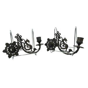 Crafted with intricate dragon designs, these antique cast metal sconces / candle holders add a gothic flair to any space.