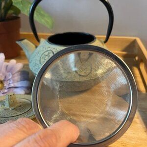 Cast iron Japanese teapot kettle light green Nambu Tekki Ironware Vintage