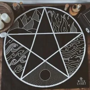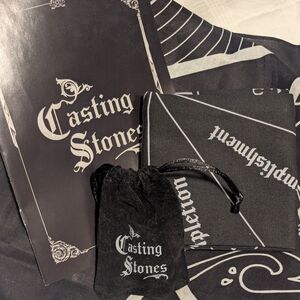 Casting Stones divination set in black with engraved stones and a velvet drawstring pouch. Includes stones, casting mat, and guidebook for intuitive readings. Compact, easy-to-use set for home rituals, meditation, and spiritual practice. Great for beginners! Includes free altar cloth to decorate your sacred space 🫶