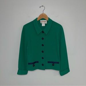Castleberry Blazer Jacket Women's Size 8 US Emerald Green Navy Wool Vintage