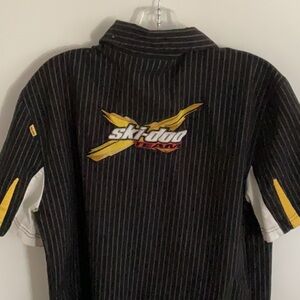 This casual button-down shirt combines a sleek black base with vibrant yellow accents, offering a modern twist on a classic design. The shirt features a comfortable fit and stylish striped details on the sleeves, making it perfect for everyday wear. Its versatile look is ideal for both relaxed outings and casual gatherings.