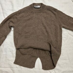 Soft brown sweater with asymmetrical detail. Loose fitting. Never worn.