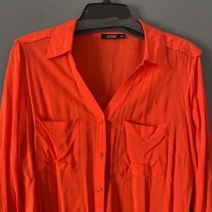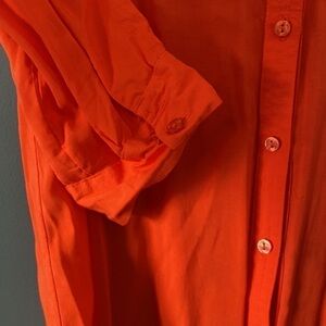 A.n.a A New Approach Button-Down Blouse – A vibrant, lightweight orange top with a relaxed fit and roll-tab sleeves. The perfect statement piece for layering or wearing solo!