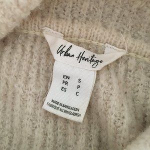 Good preowned condition, cream coloured, knit sweater with cowl neck by Urban Heritage. A neutral, easy to match, layering staple.
