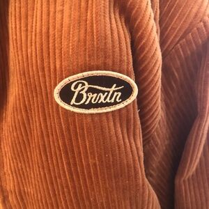Soft rust brown corduroy jacket in large by Brixton. Elastic waist snaps at cuffs. PTP 22” oversized piece.