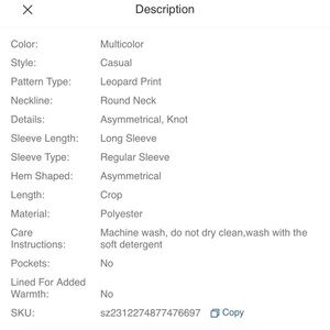 Casual Ladies One Shoulder Long Sleeve Leopard Print Tie up
