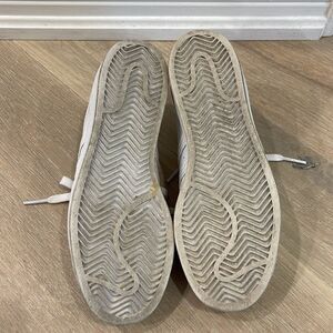 Stylish white sneakers for everyday wear. Comfortable and versatile. Well worn.