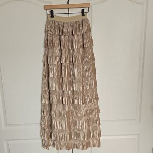Casual Tan Tiered Maxi Skirt