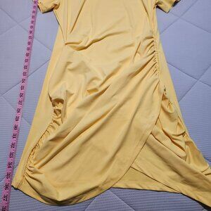SHEIN size 2XL, very nice casual dress, smooth material, rushed at sides with a short slit at one side, nice color yellow, like new condition