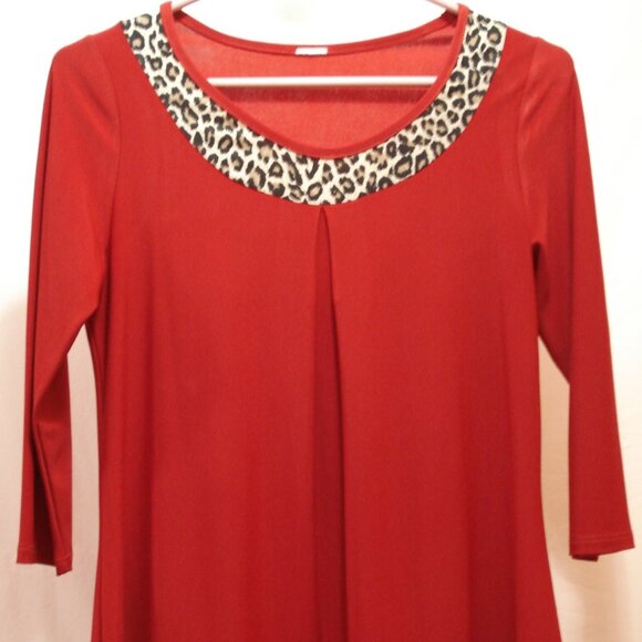 Casual three-quarter sleeve Polyester Blouse with leopard prints on neckline