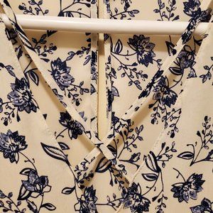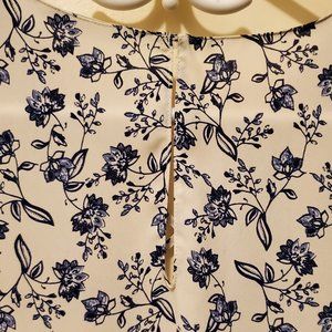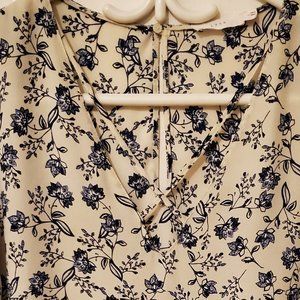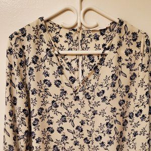 Blue and White Flowing Blouse Long Sleeve 28" long Size Medium25" Lenth Button Back Closed By Lush
