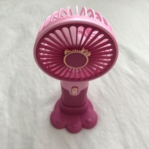 Cat Bow Portable Mini Electric Fan Stand Outdoors Camping Beach Use Pink Gold