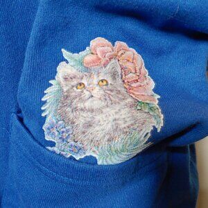 Cat Cardigan Cobalt Blue Kitschy Grandma Button up