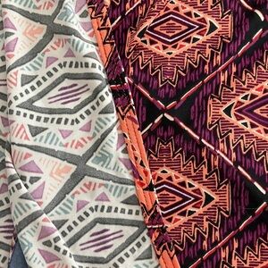 AI description Bohemian style kimono with fringe details. Features a vibrant red and blue geometric pattern.